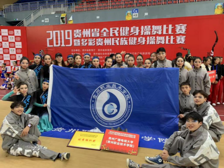 2019年12月14日—15日,由贵州省教育厅、贵州省体育局主办的2019年贵州省全民健身操舞比赛暨多彩贵州民族健身操舞比赛在凯里学院举行。此次比赛一共吸引了来自各个高校的15支代表队并组参赛。我校的健美操队一共29人,在杨筱竹、杨方平、吴海建、孟哲四位老师的带领下,前往凯里学院参加比赛,为校征战。