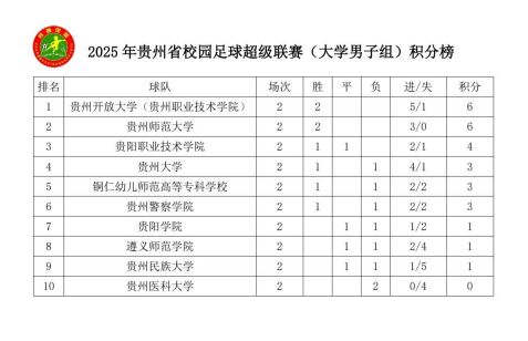 由贵州省教育厅、贵州省体育局联合主办的2025年贵州省大学生超级组足球联赛于4月20日正式拉开序幕。