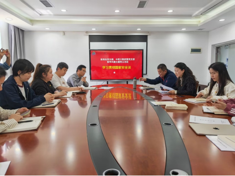 最后,财务处党支部书记强调,党员干部要增强维护国家安全的责任感和使命感,带头履行维护国家安全的责任,自觉遵守法律法规,以实际行动守护我们的国家安全,共同织密织牢国家安全防护网,积极当好维护国家安全的践行者和排头兵。