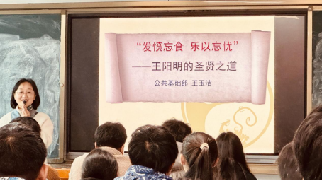 2024年11月20日,公共基础部(体育工作部)中文教研室王玉洁副教授主讲的公开课——《发愤忘食 乐以忘忧——王阳明的圣贤之道》在敏行楼807教室举行。现场济济一堂,除了有100多名学生之外,还特邀教务处副处长黄守峰,公共基础部(体育工作部)党委书记、主任黄伟春,公共基础部(体育工作部)执行主任余学军,各教研室教师代表十余人参加听评课。